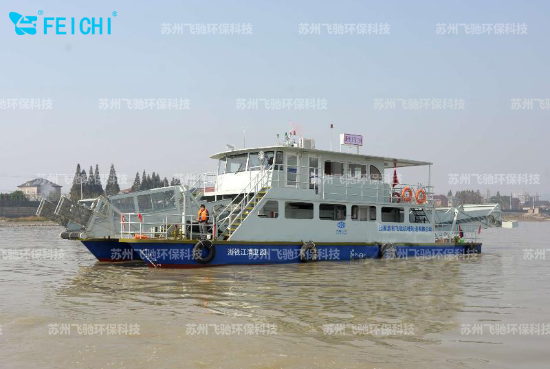 水域保潔供應(yīng)商:飛馳環(huán)保生產(chǎn)打撈船,割草船,浮萍收集船