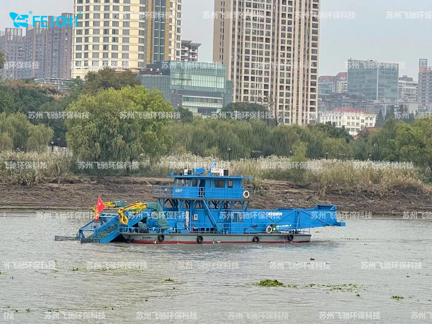 水域保潔供應(yīng)商:飛馳環(huán)保生產(chǎn)打撈船,割草船,浮萍收集船