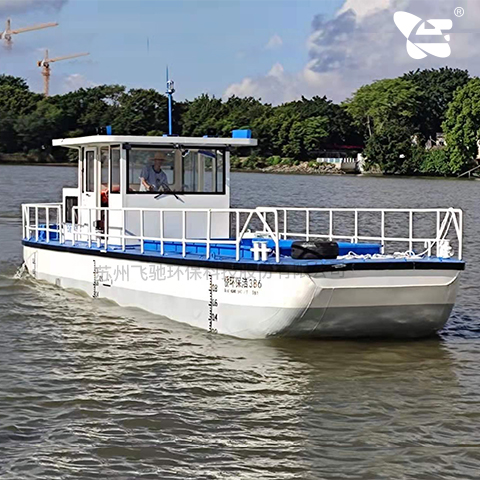 水域保潔供應(yīng)商:飛馳環(huán)保生產(chǎn)打撈船,割草船,浮萍收集船