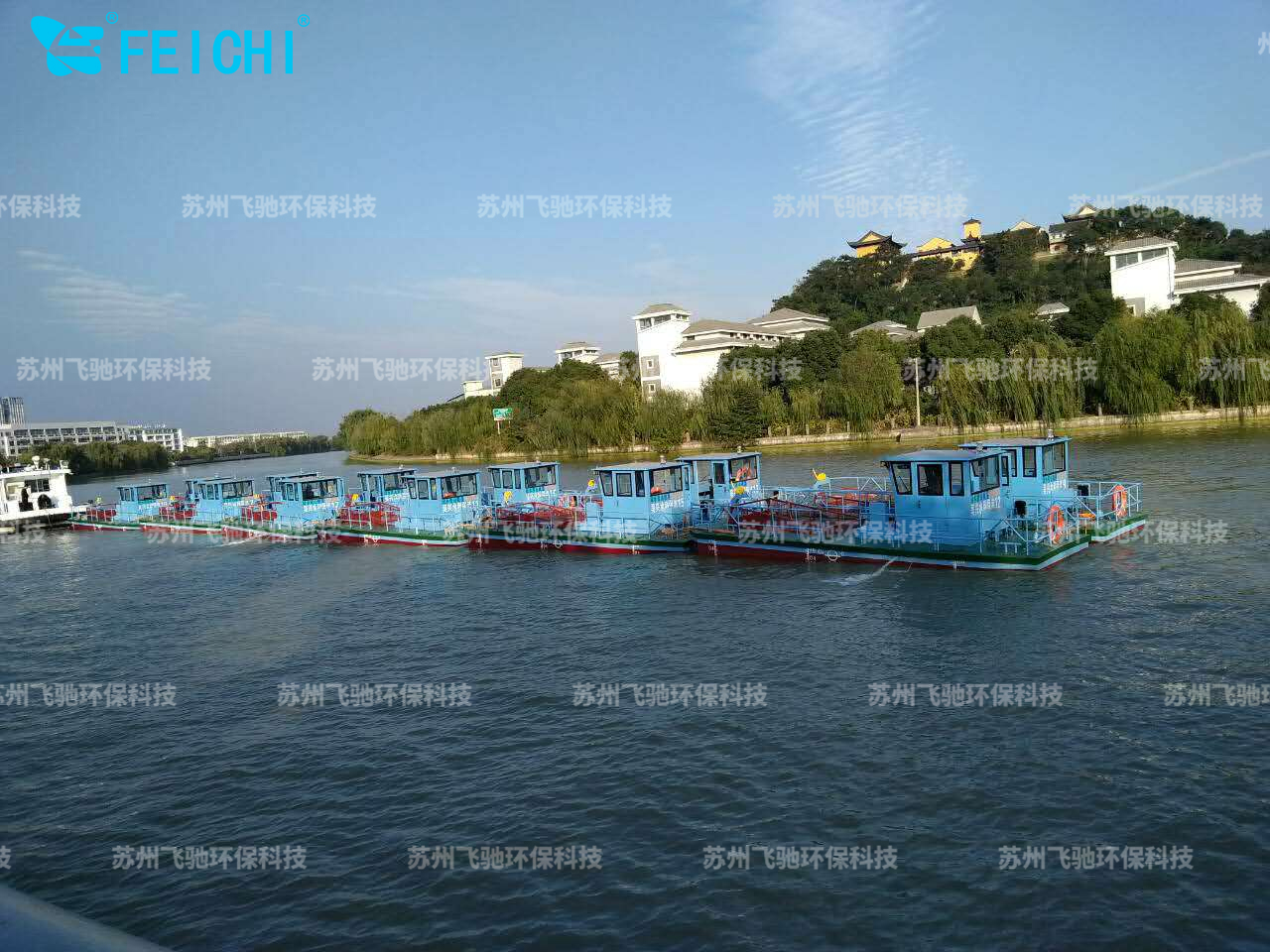 水域保潔供應(yīng)商:飛馳環(huán)保生產(chǎn)打撈船,割草船,浮萍收集船