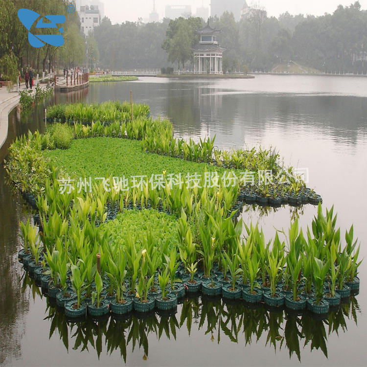 生態(tài)浮島利用水生植物吸附氮、磷、有機物的特點進行水質提升,根據(jù)不同水體情況進行不同植物的選用,并且可以設計多種造型適用不同場景。