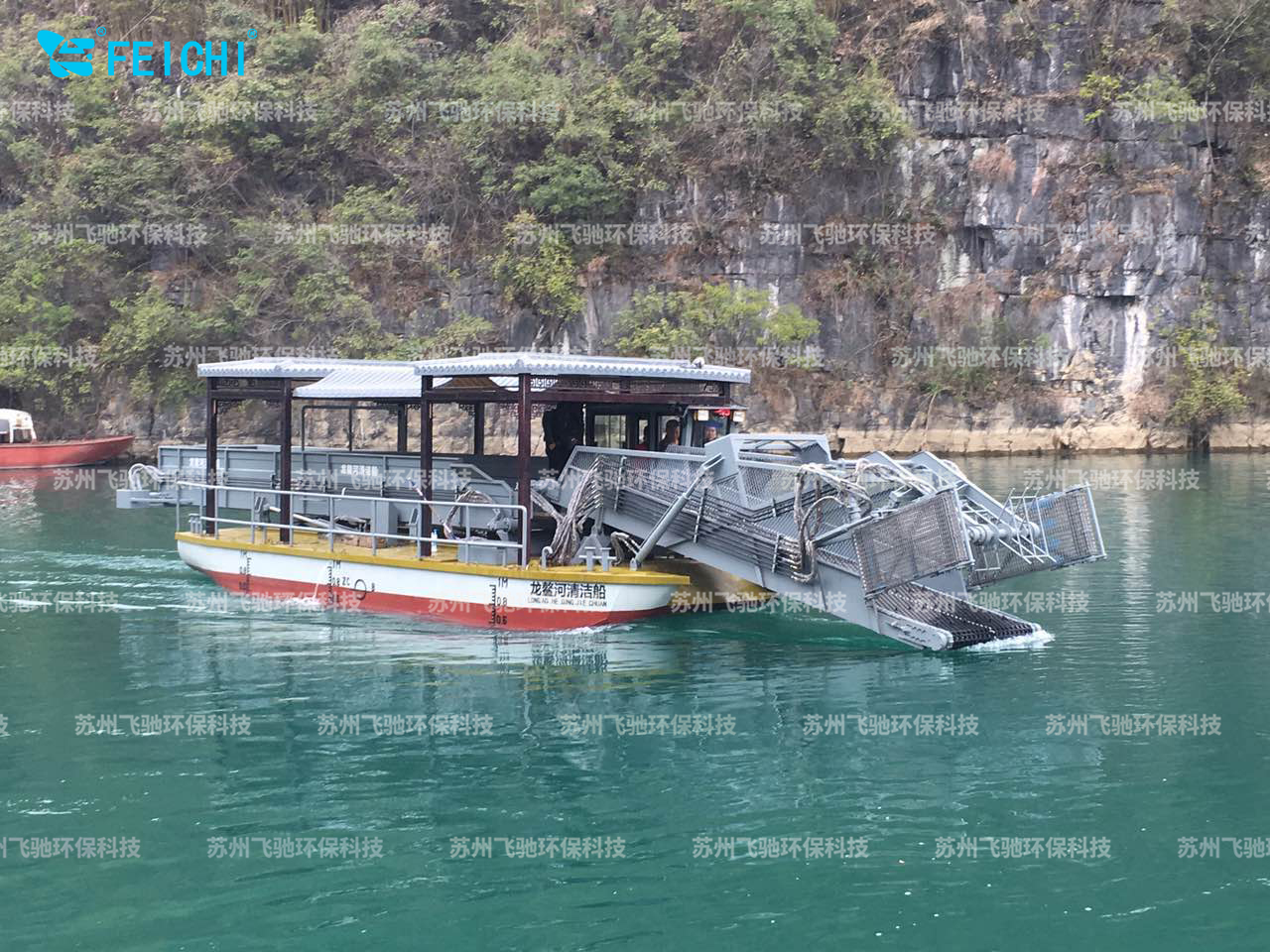 水域保潔供應(yīng)商:飛馳環(huán)保生產(chǎn)打撈船,割草船,浮萍收集船