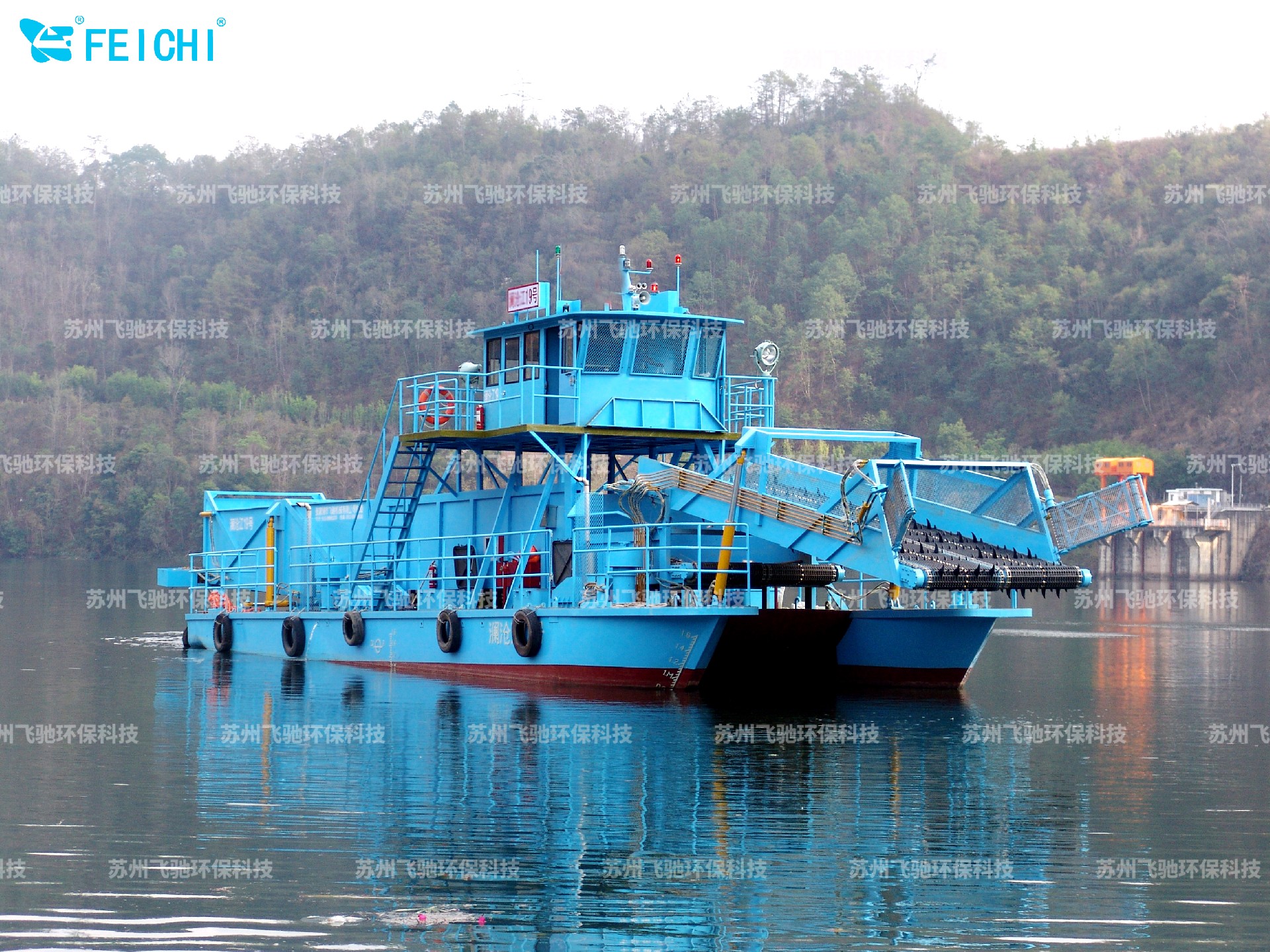 水域保潔供應(yīng)商:飛馳環(huán)保生產(chǎn)打撈船,割草船,浮萍收集船