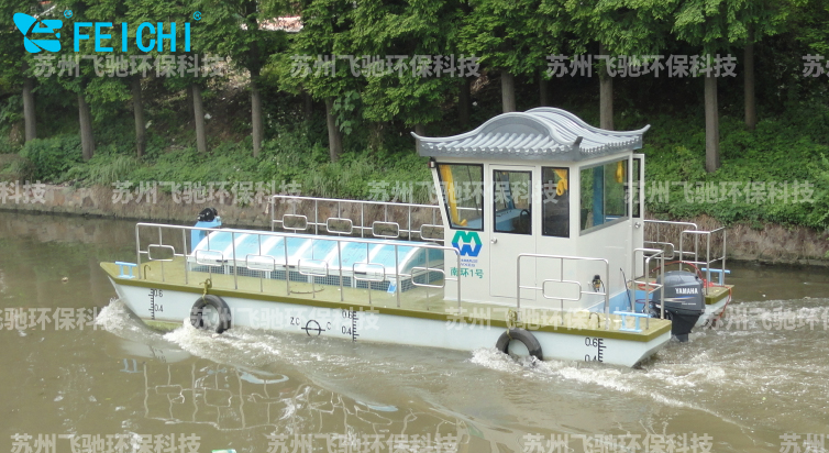 水域保潔供應(yīng)商:飛馳環(huán)保生產(chǎn)打撈船,割草船,浮萍收集船