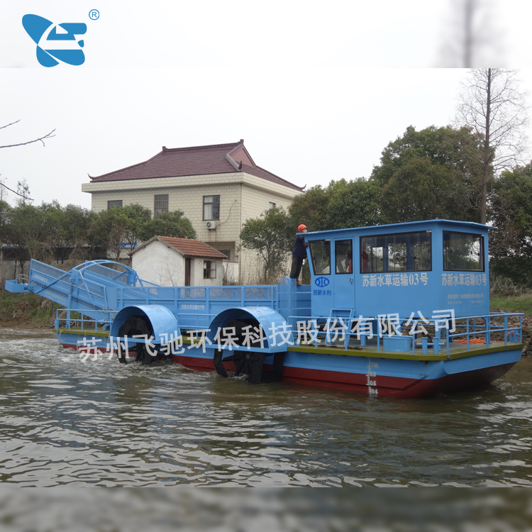水域保潔供應(yīng)商:飛馳環(huán)保生產(chǎn)打撈船,割草船,浮萍收集船