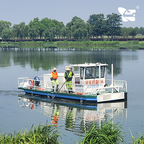 水域保潔供應(yīng)商:飛馳環(huán)保生產(chǎn)打撈船,割草船,浮萍收集船
