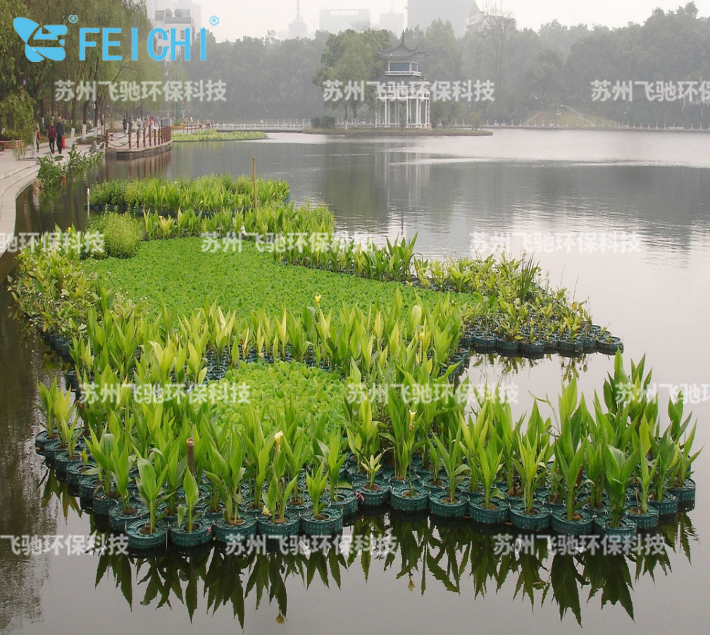生態(tài)浮島利用水生植物吸附氮、磷、有機物的特點進行水質提升,根據(jù)不同水體情況進行不同植物的選用,并且可以設計多種造型適用不同場景。