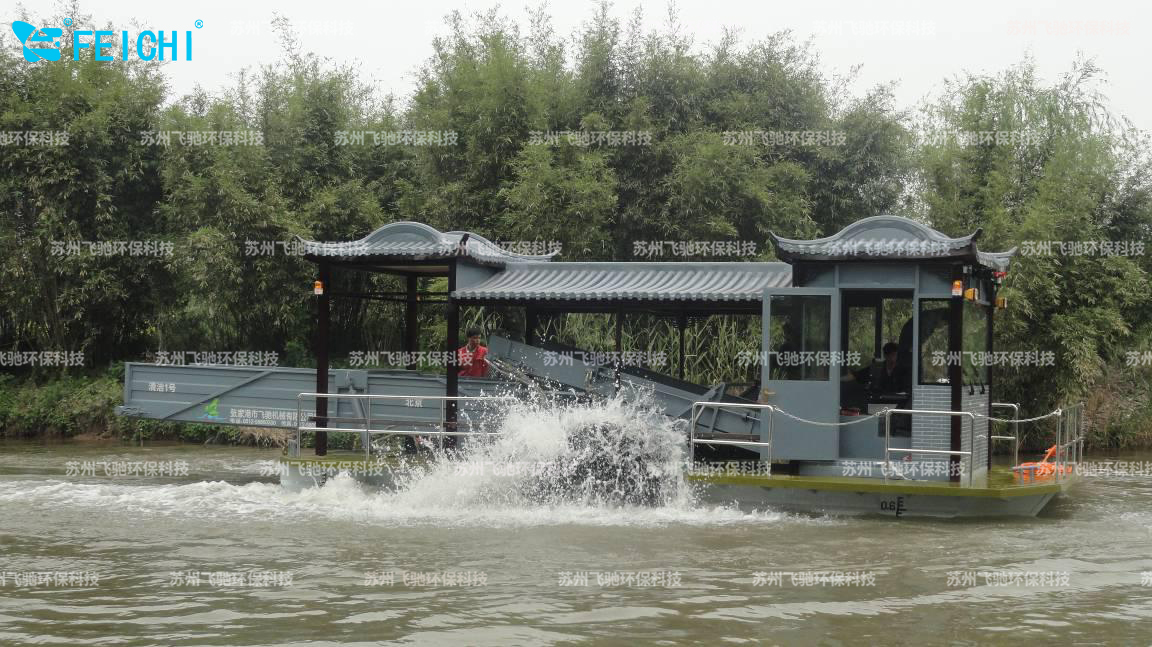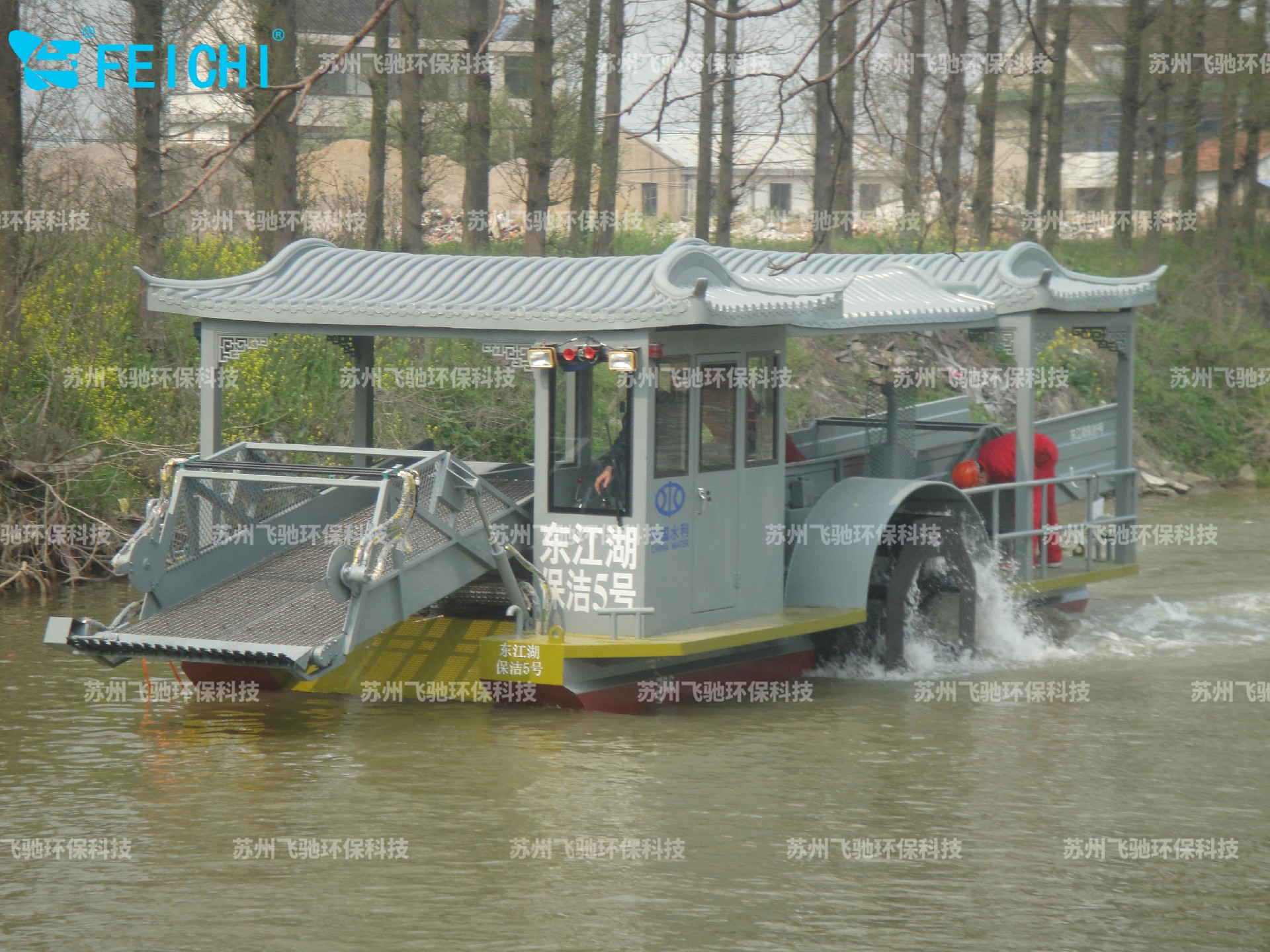 水域保潔供應(yīng)商:飛馳環(huán)保生產(chǎn)打撈船,割草船,浮萍收集船