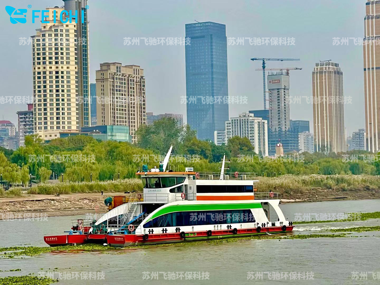 水域保潔供應(yīng)商:飛馳環(huán)保生產(chǎn)打撈船,割草船,浮萍收集船